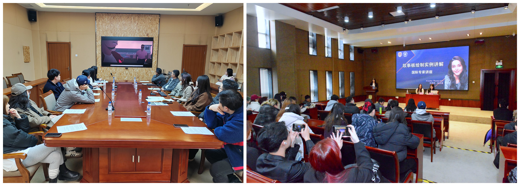 为拓展师生国际视野,营造良好的学术氛围,加强师生对专业前沿知识的认知,3月份,动画产业学院邀请国际青年艺术家艾依莎·彭沃登(Aiesha Penwarden)与学院师生开展了两次面对面深入交流。3月20日,艾依莎为动画产业学院、动画艺术学院共150余名师生做了题为《故事板绘制实例讲解》专题讲座。3月27日,艾依莎与动画产业学院骨干教师的交流座谈会在产业大厦二楼小会议室召开。无论学术讲座或是交流座谈,艾依莎均向大家展示了多个优秀动画作品,并结合自己大学课程经历谈了在人才培养与课程建设上的观点,以及结合自己参与动画创作的经历,分享了国际动画产业的最新趋势和发展动向,学院师生均表示受益匪浅。