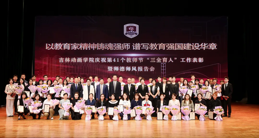 作为吉林动画学院庆祝第41个教师节的系列活动,本次表彰大会在经久不息的掌声中圆满结束。未来,学校将继续坚守“为党育人、为国育才”的初心使命,持续深化“五负责”办学宗旨,将“自尊、自强、创新、创造”校训精神熔铸于教育教学全过程,将与时代同频,携手为文化强国、教育强国、科技强国、人才强国建设贡献吉动的智慧与力量。