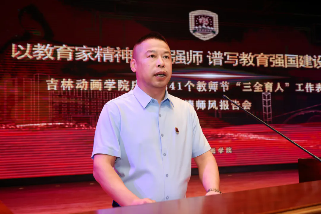 会上,刘欣宣读《吉林动画学院关于2025年“三全育人”工作表彰的决定》,共表彰“课程育人”教学质量优秀奖73名,“实践育人”创新创业项目实践优秀奖28名,“管理育人”教育育人标兵32名,“服务育人”服务育人标兵21名。